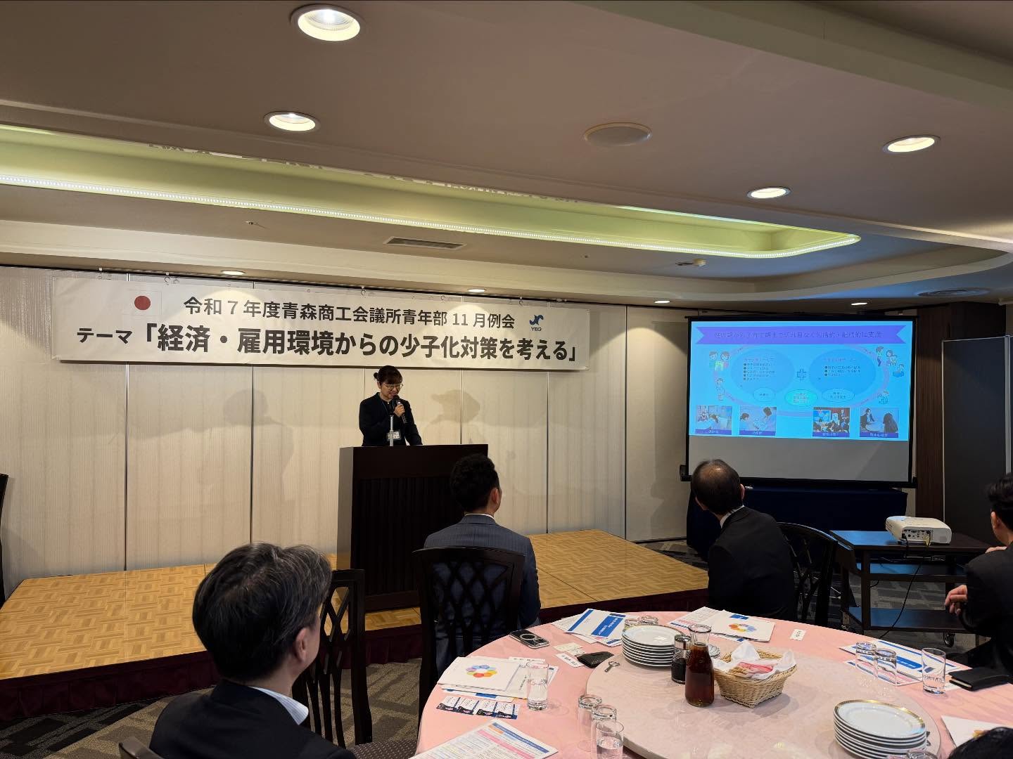 そこで子育てと仕事との両立に向け、「子育て支援モデル企業認定制度」の提言検討にあたり青森YEGから発信を行いたいと学びも含めた例会となりました。